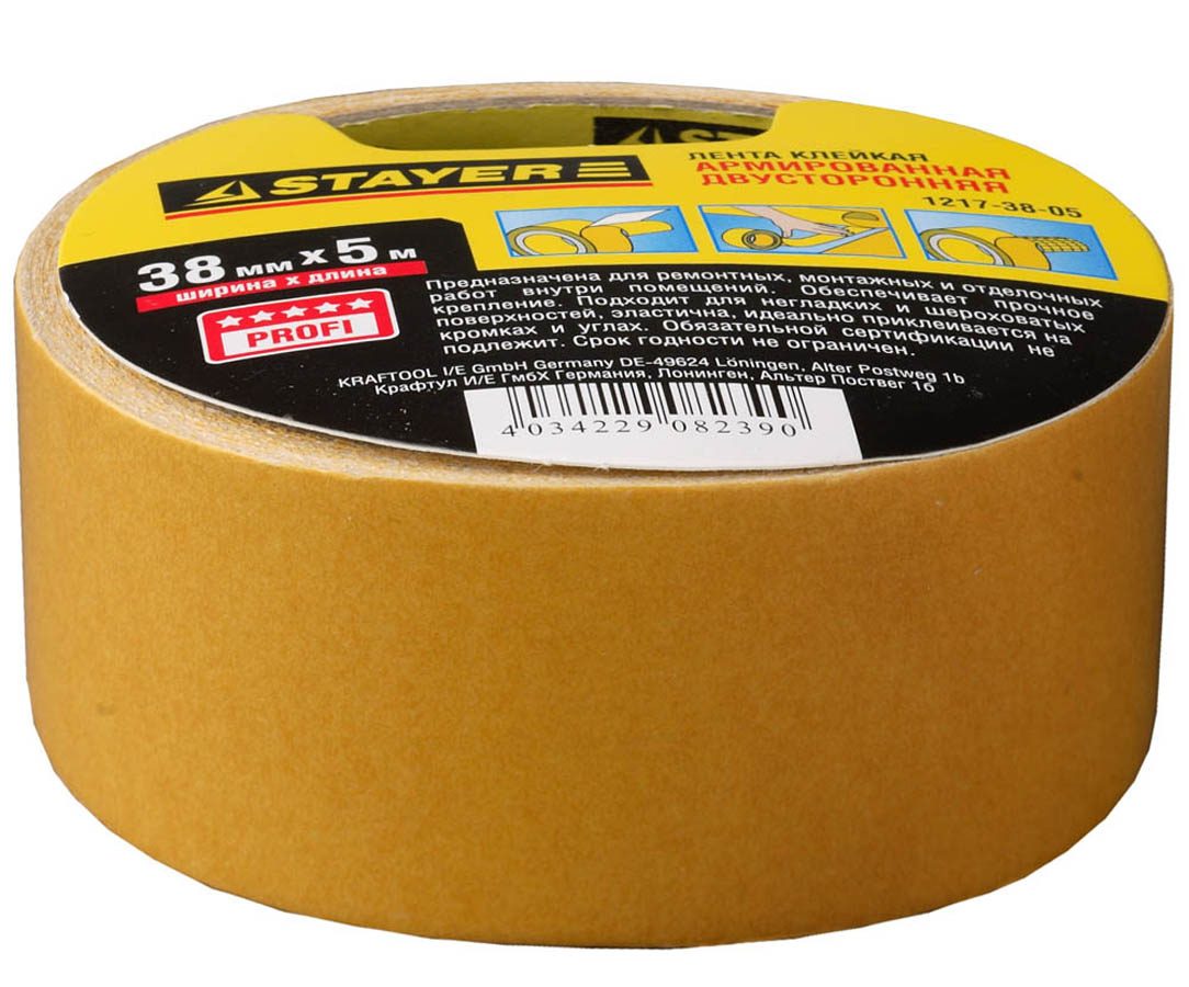 Двухсторонняя клейкая лента на тканевой основе, STAYER Profi 1217-38-05, 38мм х 5м