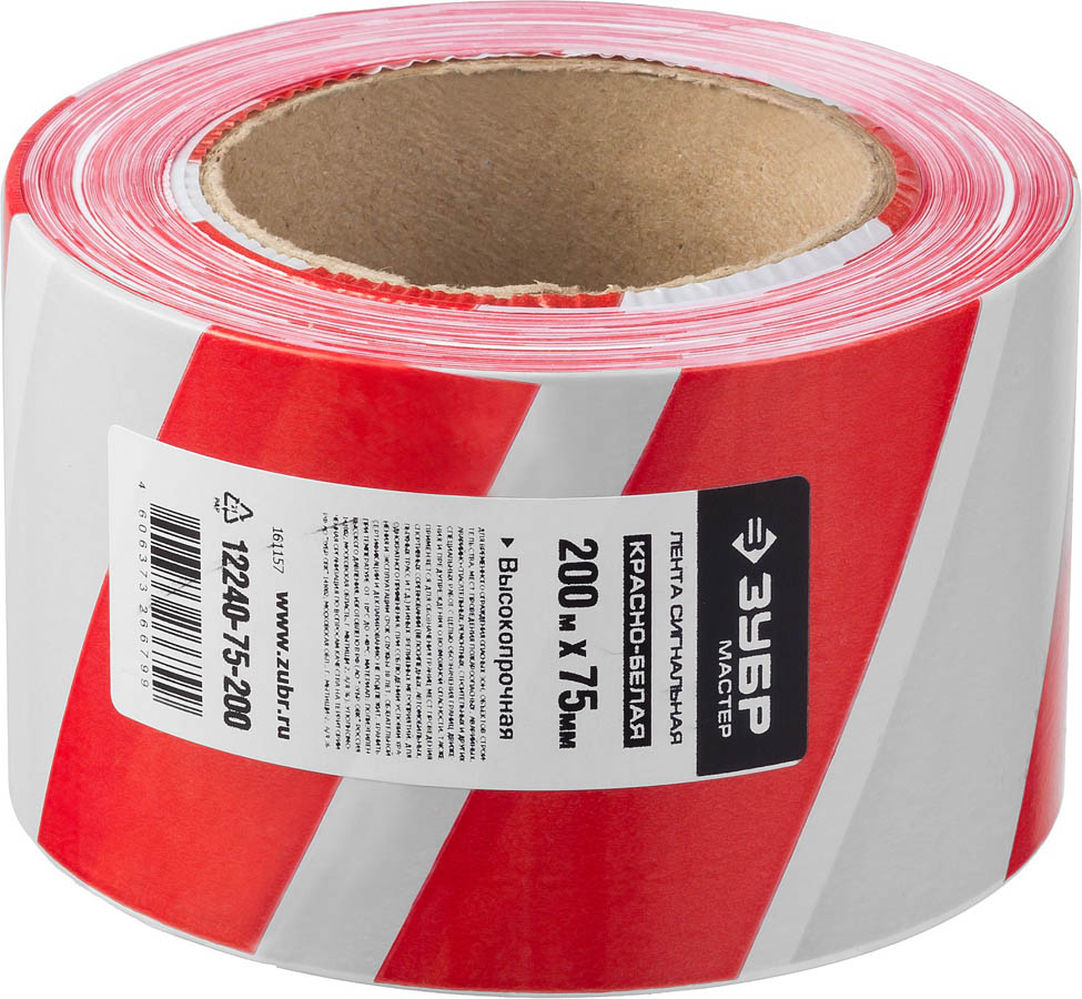 Сигнальная лента, цвет красно-белый, 75мм х 200м, ЗУБР Мастер