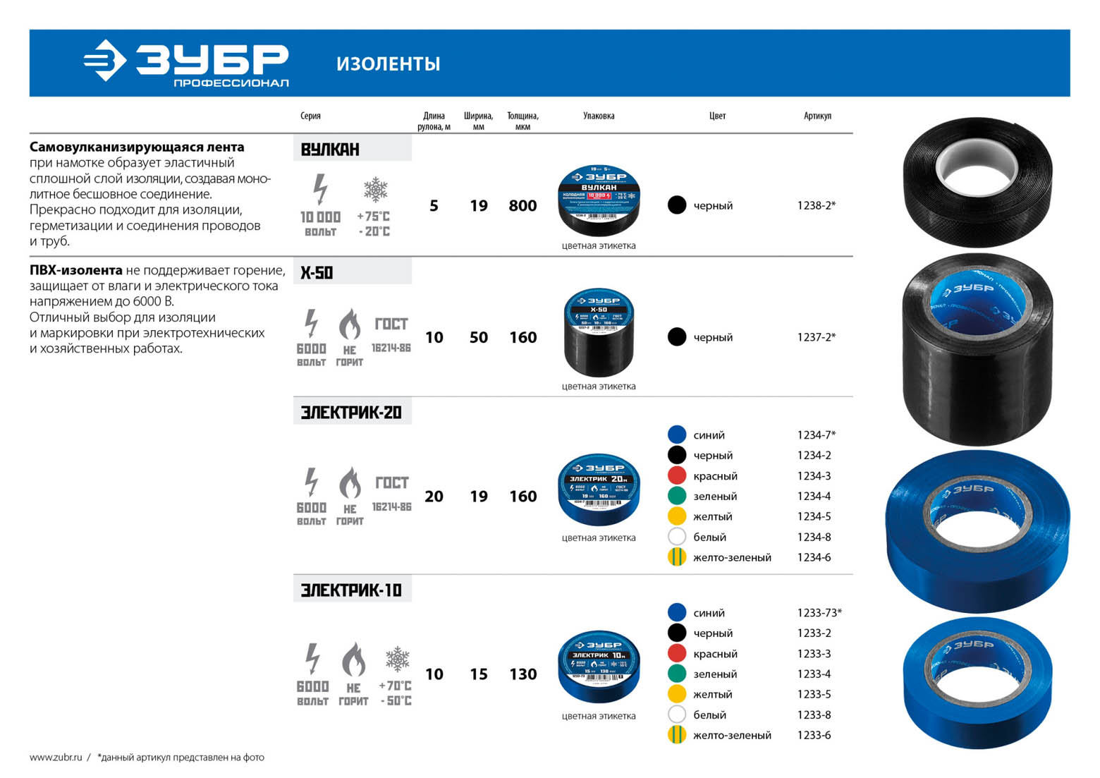 Изоляционная лента ЗУБР 1237-2, предназначена для надежной и быстрой изоляции проводов и труб. Обеспечивает защиту от влаги и электрического тока напряжением до 6000 В. Не поддерживает горение.