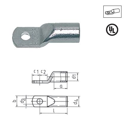 Медные трубчатые наконечники для подключения к клеммам коммутационных устройств, облегченного типа (стандарт Klauke), с узкой контактной площадкой.