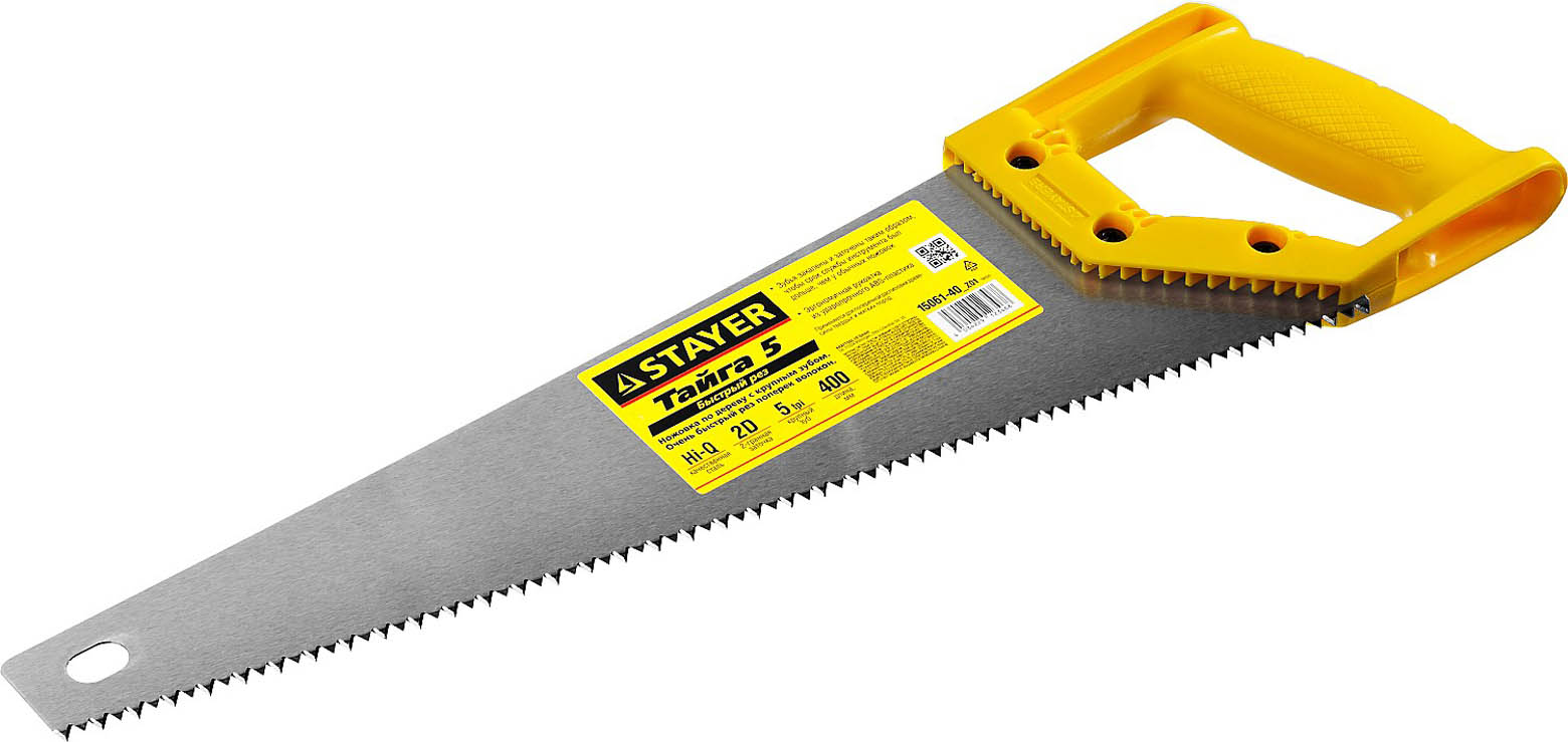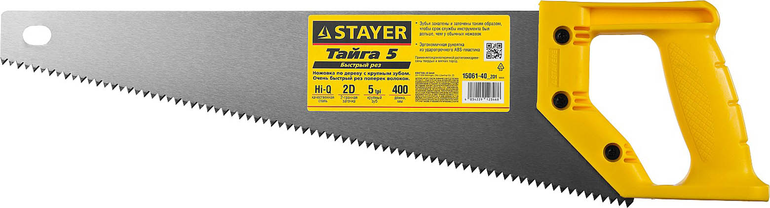 Ножовка ударопрочная (пила) STAYER ТАЙГА-5 400 мм, 5 TPI, быстрый рез поперек волокон, для крупных и средних заготовок
