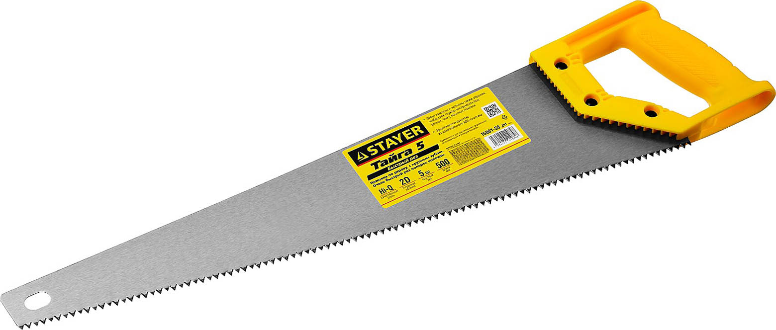 Ножовка по дереву STAYER 15061-50_z01, предназначена для распиливания деревянных заготовок вдоль и поперек волокон. Закаленный заточенный зуб обеспечивает высокую скорость реза и увеличенный срок службы.