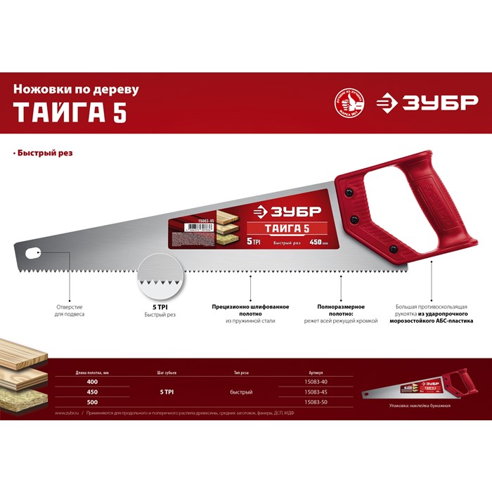 Ножовки для быстрого реза «ТАЙГА-5» 15083-45 Зубр