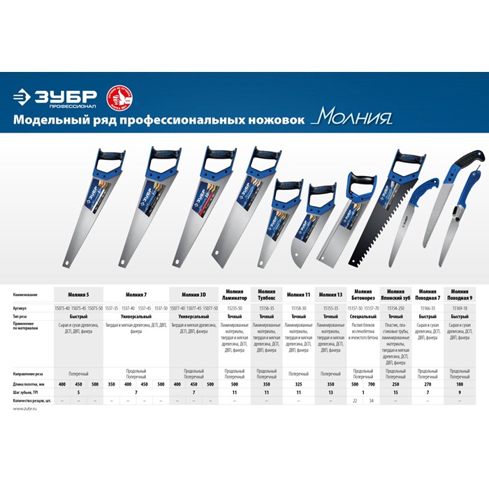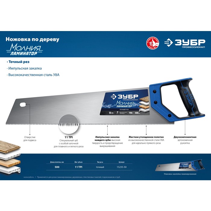 Ножовки по дереву ″ЛЕВША-Ламинатор″ 15235-50 Зубр