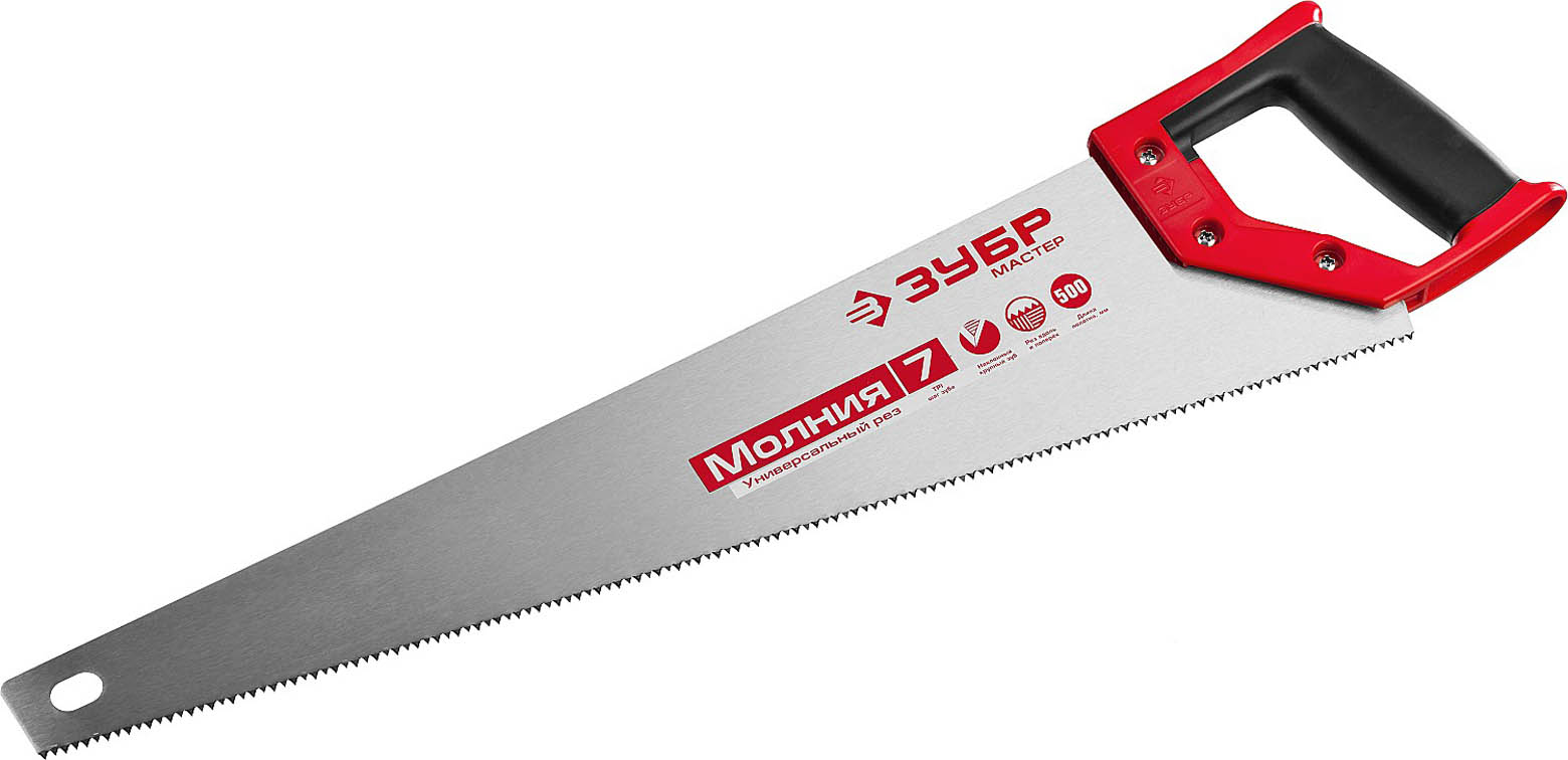 Ножовка универсальная (пила) ЗУБР МОЛНИЯ-7 500 мм, 7 TPI, закалка, рез вдоль и поперек волокон, для средних заготовок, фанеры, ДСП, МДФ