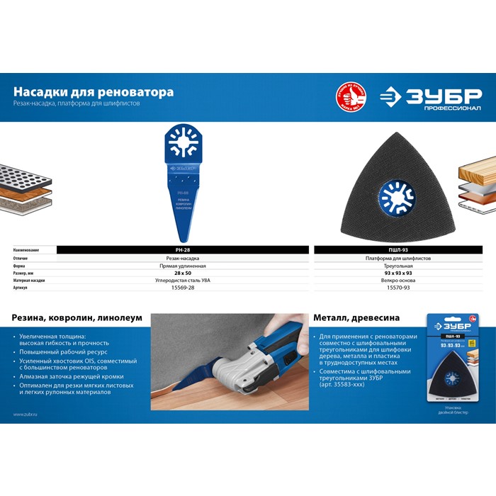 Насадки по тканным и облицовочным материалам для реноватора 15569-28 Зубр