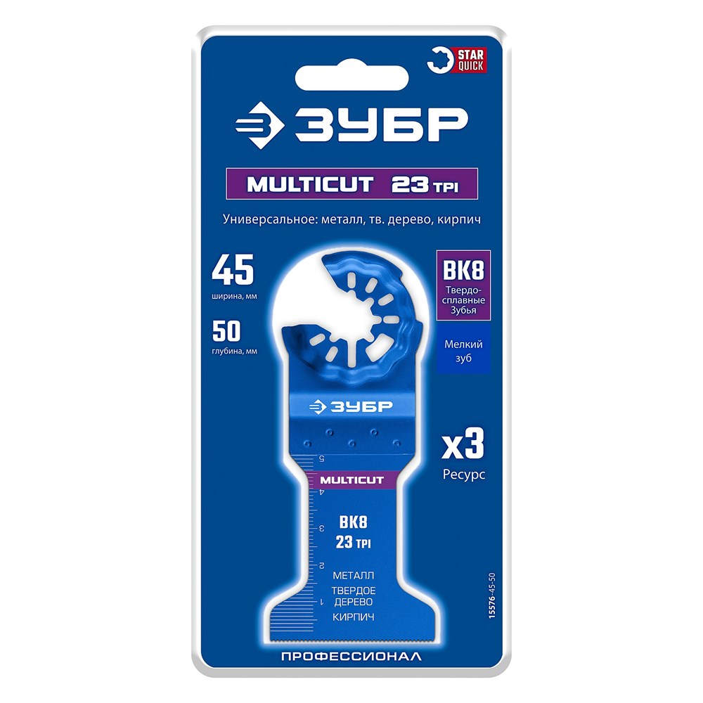 ЗУБР MULTICUT ВК8 23TPI, 45x50 мм полотно универсальное с твердосплавными зубьями (15576-45-50)