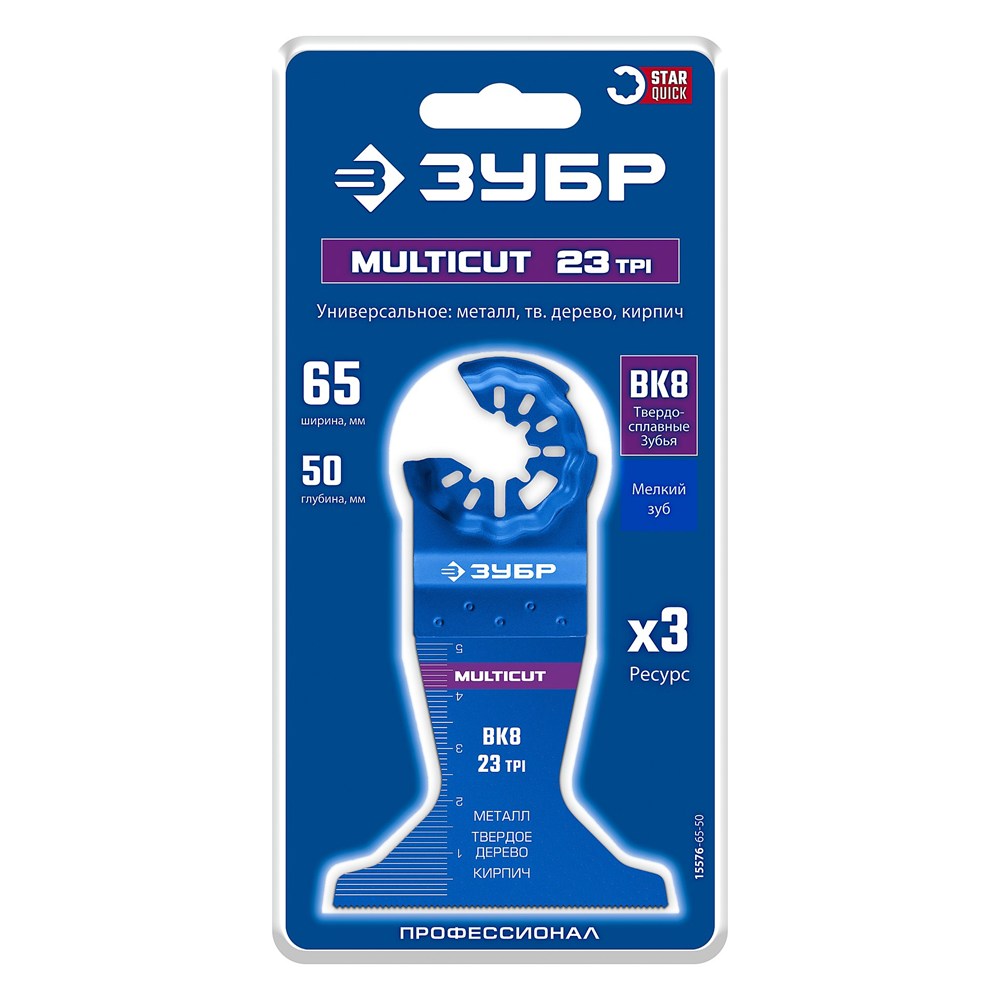 ЗУБР MULTICUT ВК8 23TPI, 65x50 мм полотно универсальное с твердосплавными зубьями (15576-65-50)