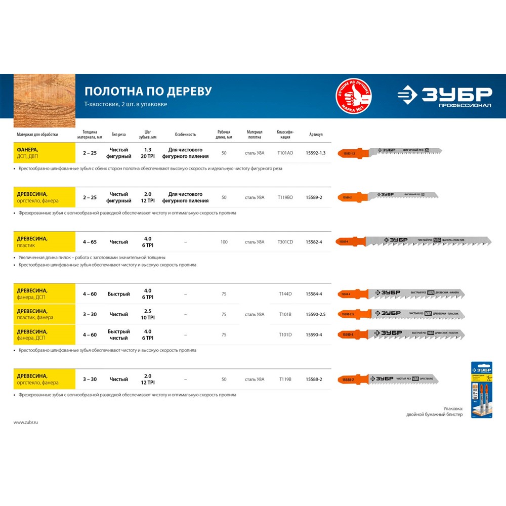 Полотна ЗУБР 15582-4_z02, применяются для высокоточного и быстрого распиливания древесины.