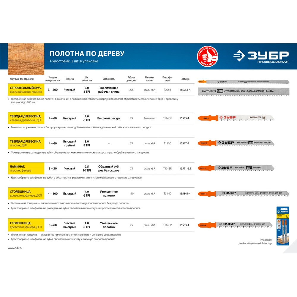 Полотна ЗУБР 15583-4_z02, применяются для высокоточного и быстрого распиливания древесины.