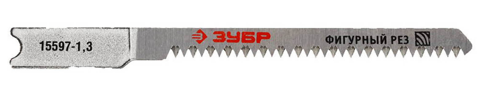 ЗУБР Cr-V, по дереву, фигурный рез, шаг 1.3 мм, 50 мм, 3 шт., полотна для эл/лобзика 15597-1.3