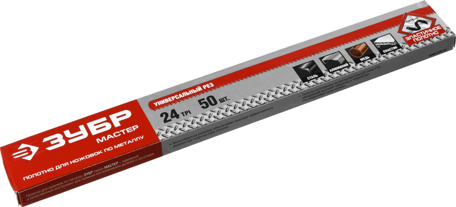 Полотно ЗУБР "МАСТЕР" по металлу 24 TPI (шаг 1.0мм), Универсальное, 50шт