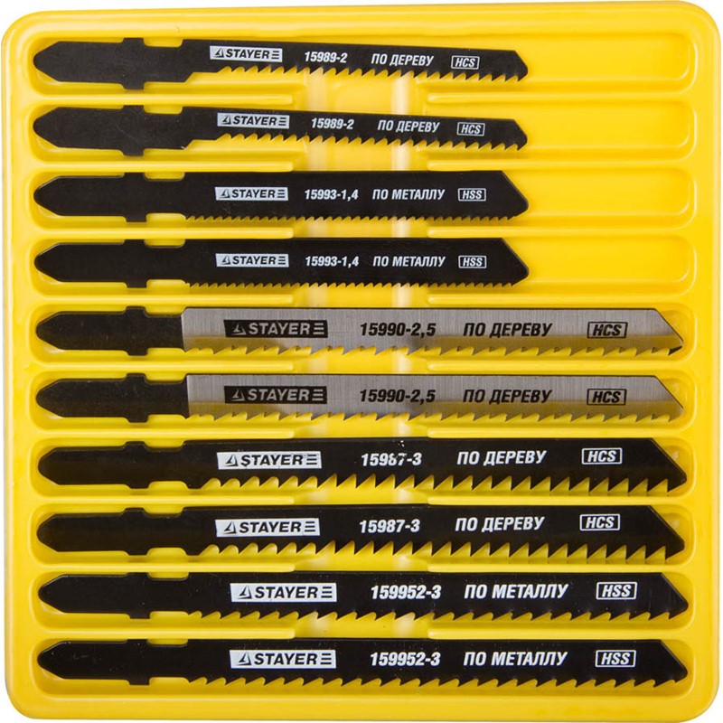 Набор STAYER "PROFI" Полотна "МАСТЕР №3" для эл/лобзика, по дереву, мет. и пластику, T-хвост.,10шт