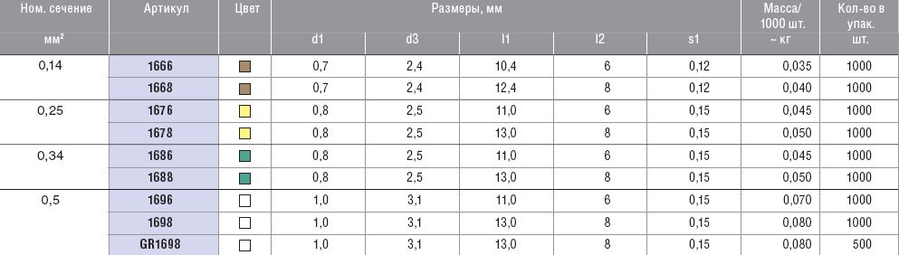 Изолированные втулочные наконечники, цветовой ряд 2.