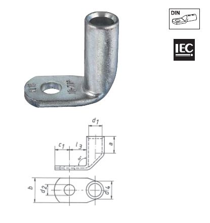 Медные угловые кабельные наконечники, угол 90°.