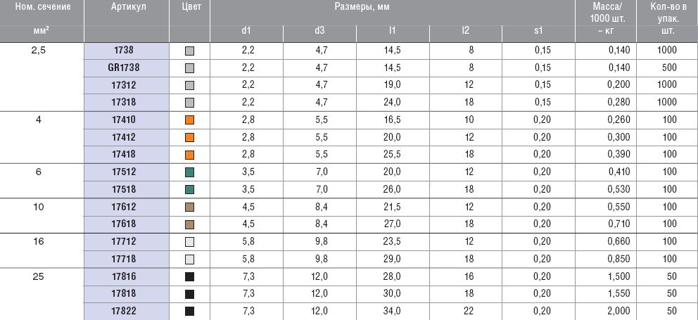 Изолированные втулочные наконечники, цветовой ряд 2.