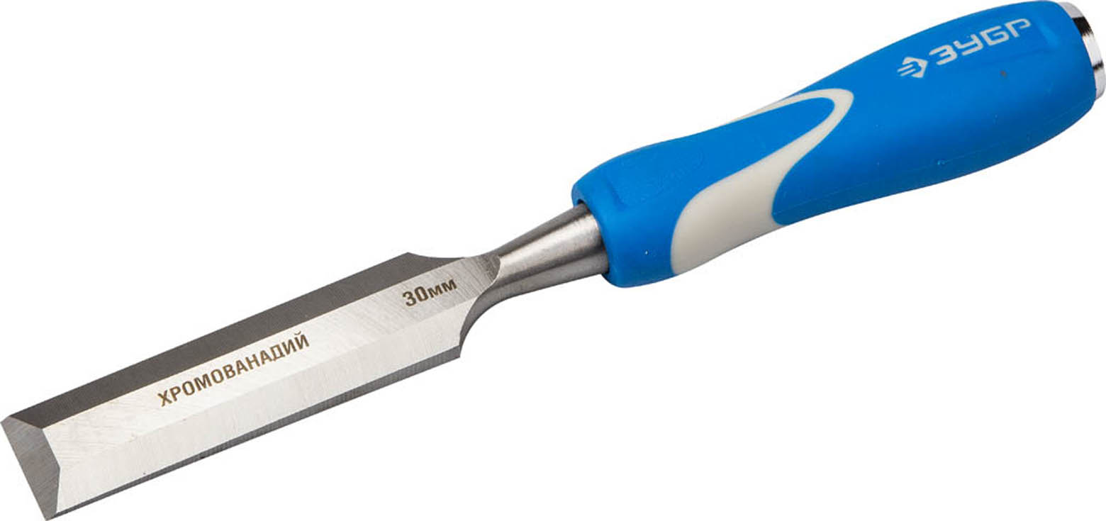 Стамеска с ударопрочной двухкомпонентной ручкой и стальным затыльником для ударных работ, 30мм, ЗУБР