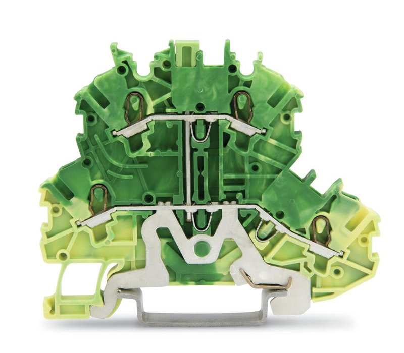 Doppelstockklemme 4-Leiter-Schutzleiterklemme PE ohne Beschriftungsträger Gehäusefarbe grün-gelb intern gebrückt grün-gelb