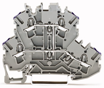 Doppelstockklemme 4-Leiter-Durchgangsklemme L ohne Beschriftungsträger Gehäusefarbe grau intern gebrückt Leitereinführung violett bedruckt für Anwendungen Ex e II geeignet grau
