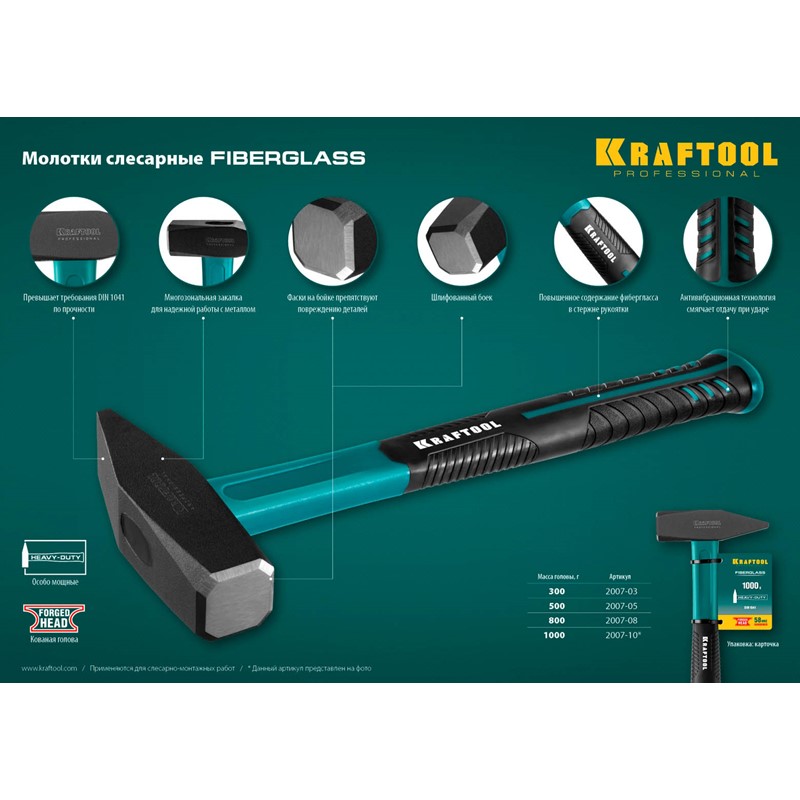KRAFTOOL Fiberglass 500 г молоток слесарный с фиберглассовой рукояткой