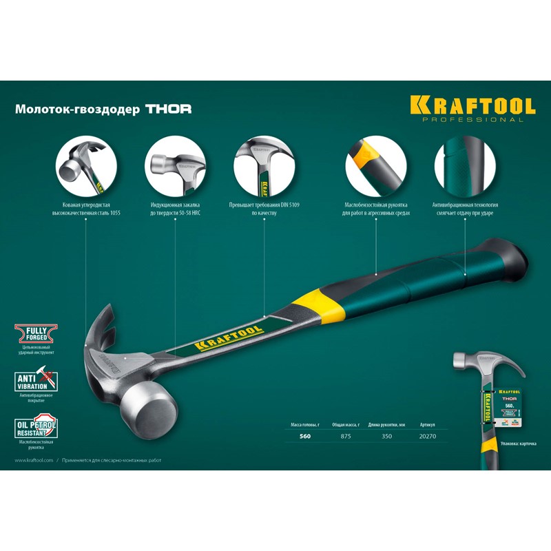 KRAFTOOL THOR 560 г молоток-гвоздодёр цельнокованый столярный