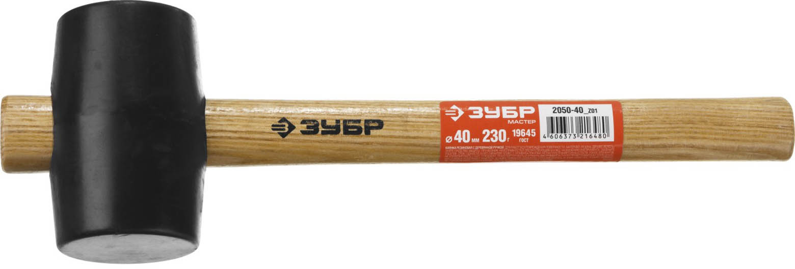 Киянка ЗУБР "МАСТЕР" резиновая черная с деревянной ручкой, 230г