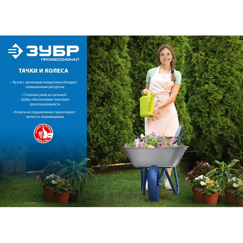 - -Стальной кузов толщиной 0,7мм и объемом 90л для сыпучих грузов имеет цинковое покрытие, обеспечивающее защиту тачки от внешних воздействий.,