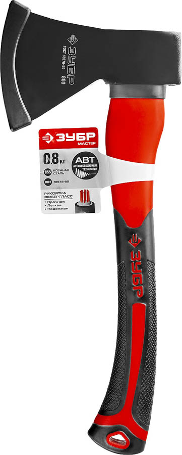 Топор ЗУБР "МАСТЕР" кованый с двухкомпонентной стеклопластиковой рукояткой, 0,8кг