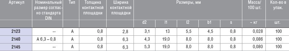 Размеры в контактной зоне по стандарту DIN 46244.
