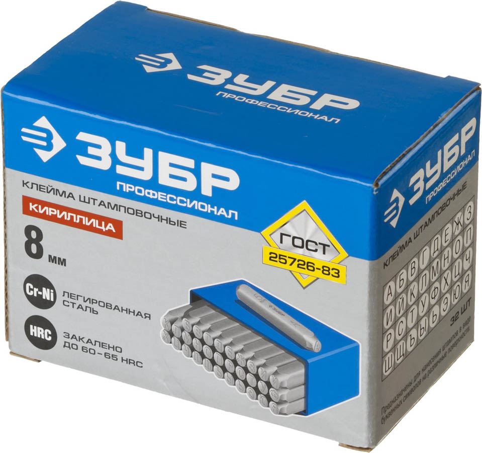 Клейма ЗУБР буквенные кириллица, шрифт 8мм