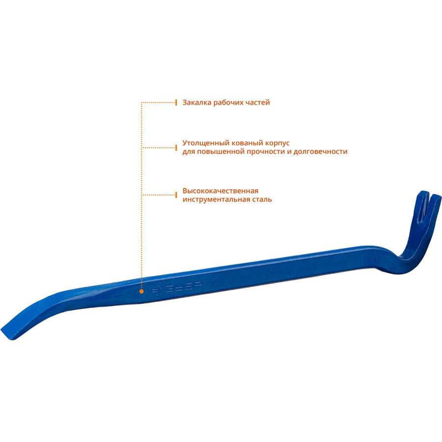 Лом-гвоздодер ЗУБР 2165-45, предназначен для демонтажа различных механизмов, конструкций, деталей. Профессиональный инструмент для демонтажных работ выдерживает длительные высокие нагрузки, обладает высоким ресурсом, имеет длительный срок службы и обеспечивает качественную работу. Специальная форма кованого корпуса, изготовленного из высококачественной инструментальной стали, выдерживает интенсивные нагрузки. Обладает высокой прочностью и долговечностью благодаря закалке рабочих частей.