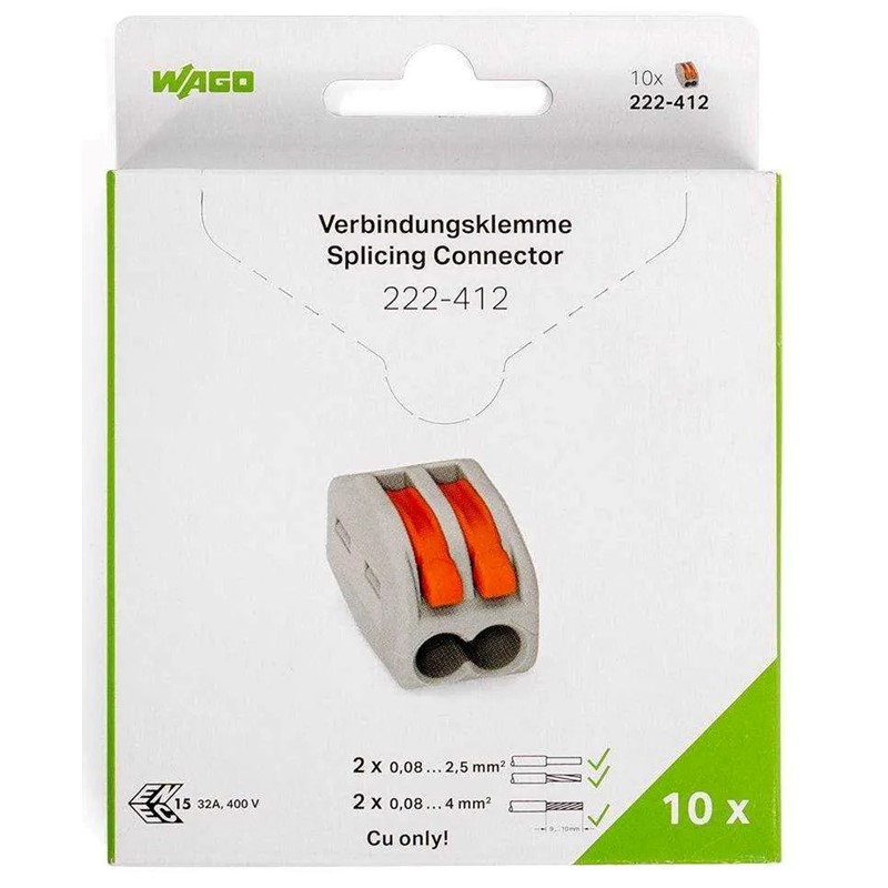 Мини-упаковка рычажковых универсальных клемм в блистерах (без контактной пасты) 222-412/995-010 (Wago)