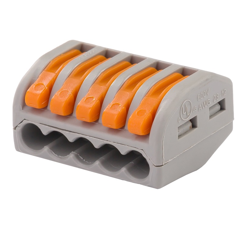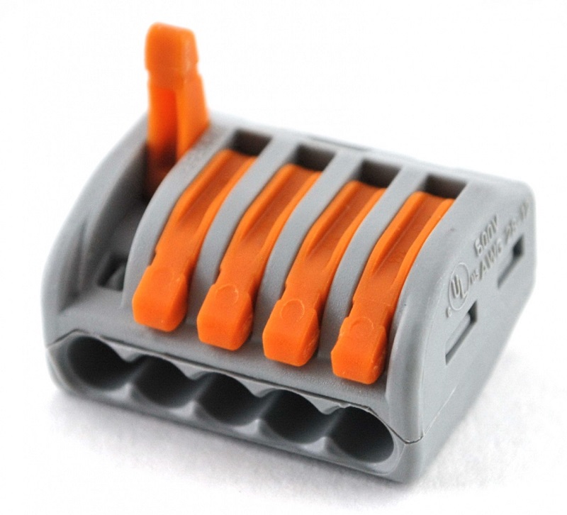 - Зажим проводов в клемме осуществляется при помощи оранжевых рычагов