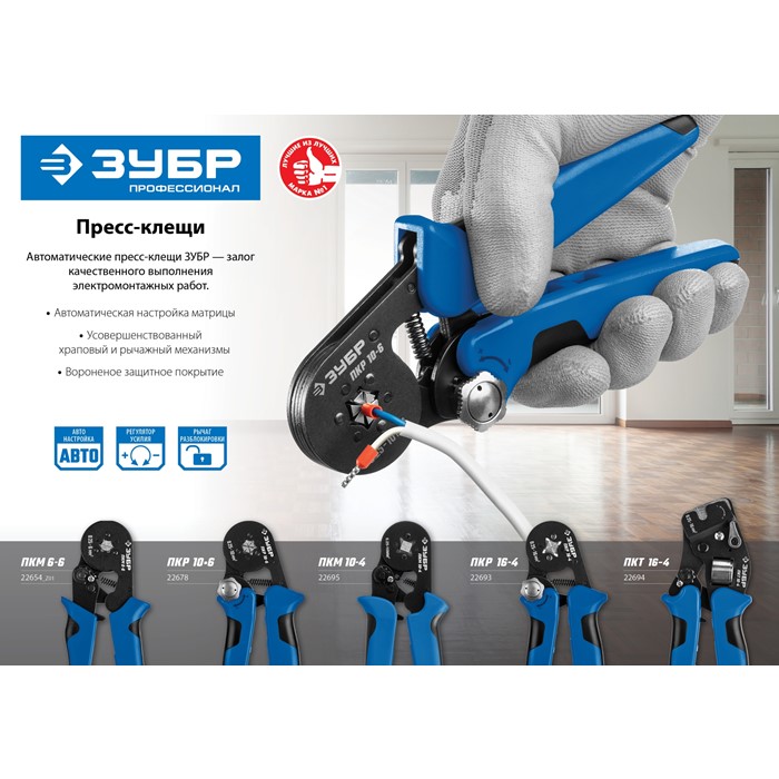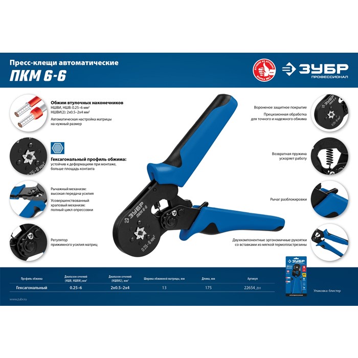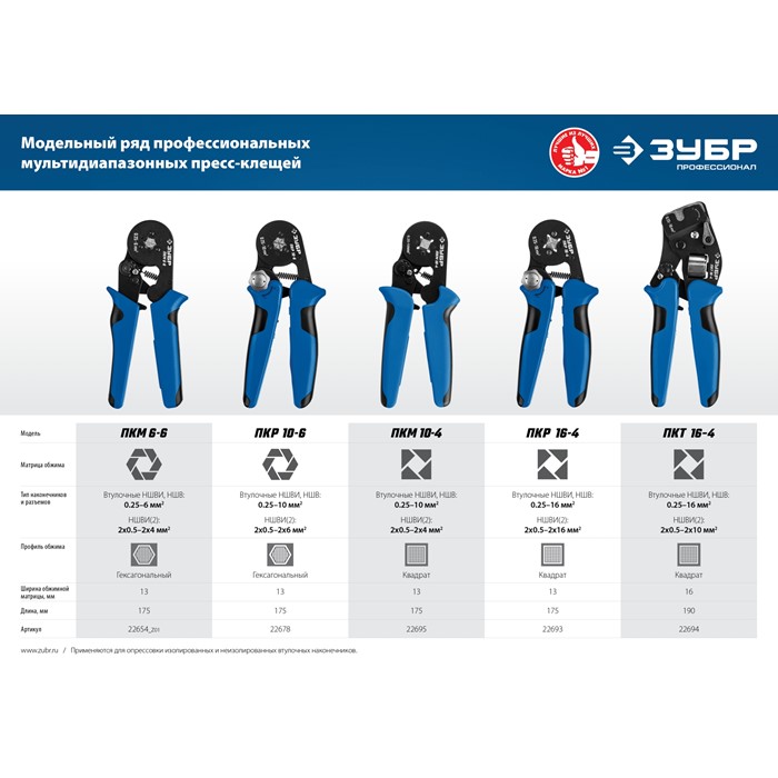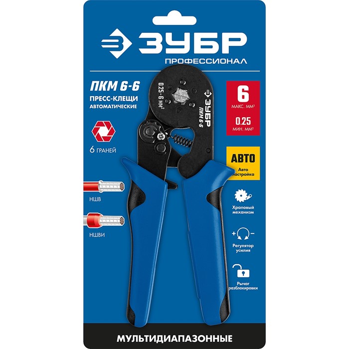 Пресс-клещи мультидиапазонные для втулочных наконечников ПКМ-6-6 22654_z01 Зубр