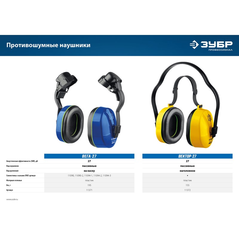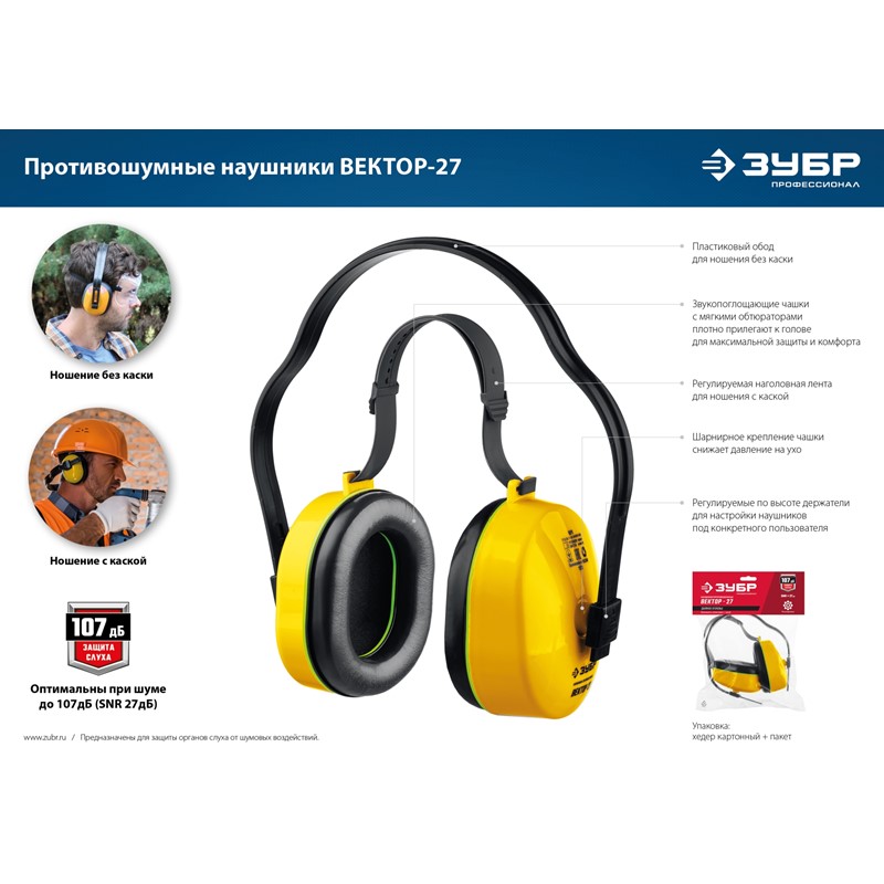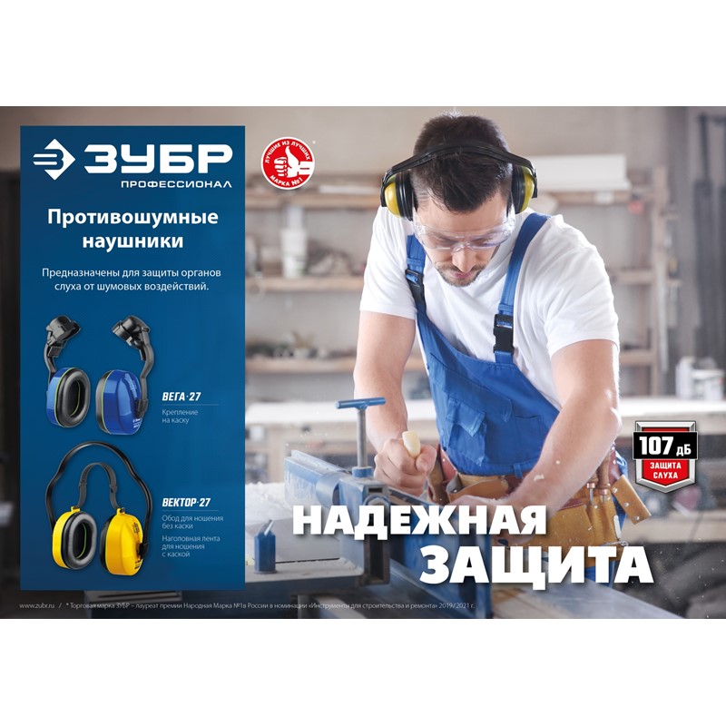 Противошумные наушники ЗУБР ВЕКТОР-27 защита до 107дБ, двойное оголовье