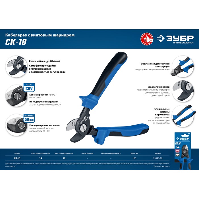 Кабелерезы CК с 2--компонентной рукояткой 23340-18 Зубр