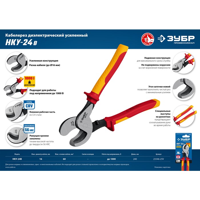 Кабелерезы НКУ диэлектрические усиленные 23346-25V Зубр