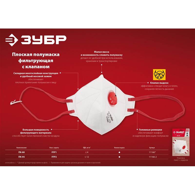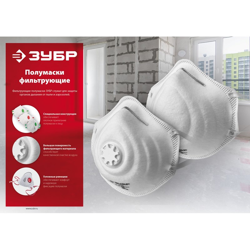 Плоская фильтрующая полумаска ЗУБР ПК-80, класс защиты FFP1, с клапаном выдоха