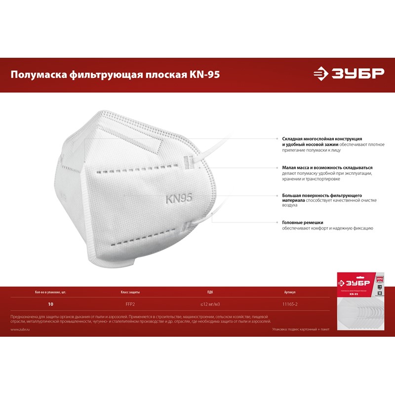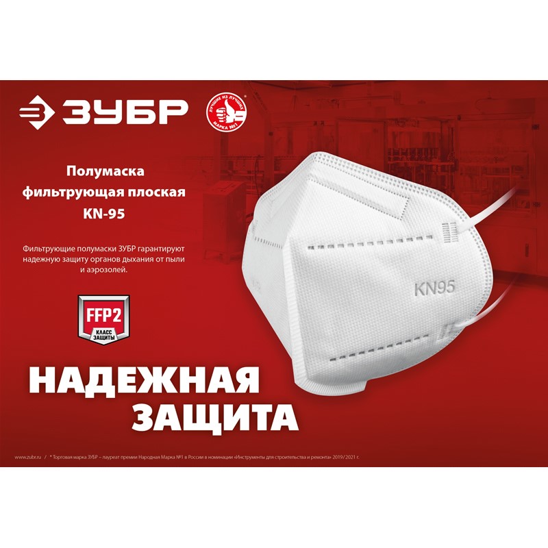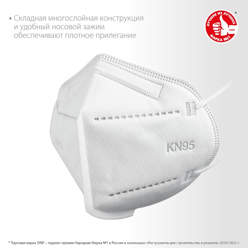Плоская полумаска фильтрующая ЗУБР KN-95 FFP2, 10 шт