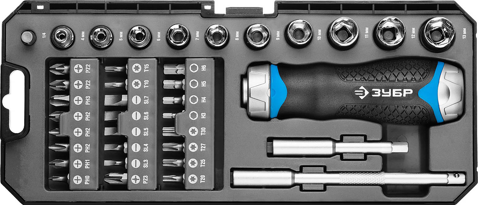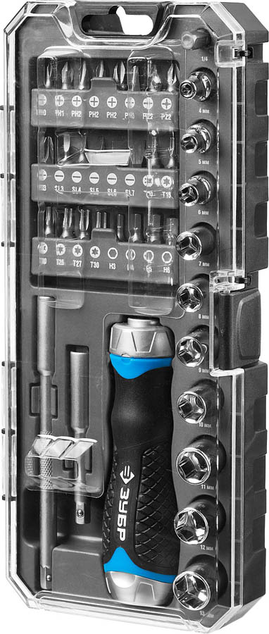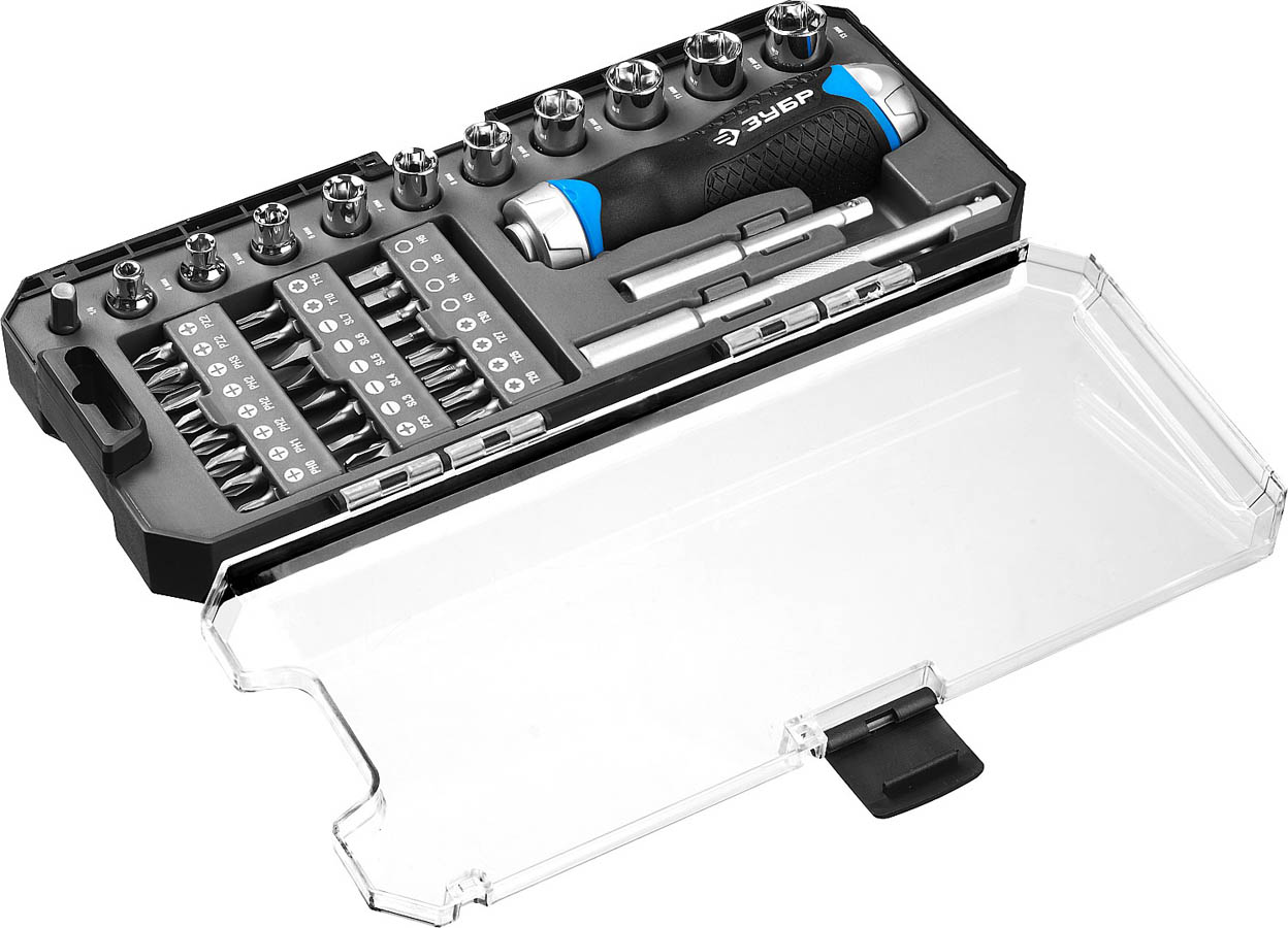 ЗУБР 38 шт., отвертка реверсивная с насадками 25352-H38 Профессионал