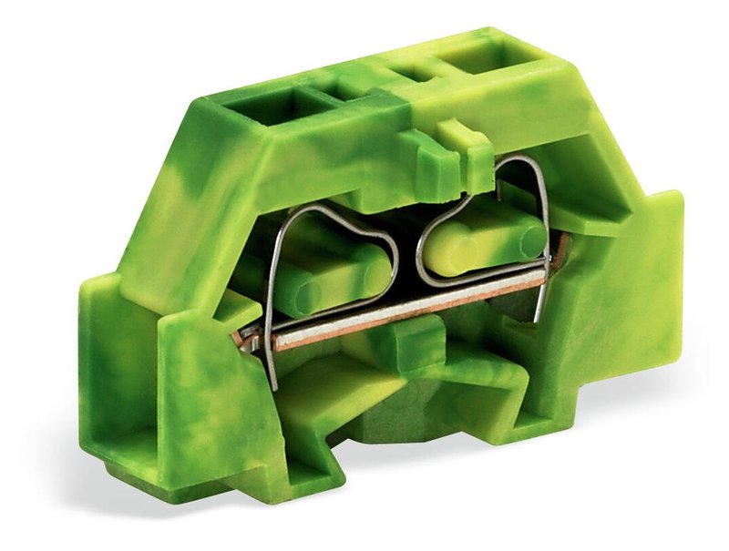 Wago клемная колодка 2-провода без кнопки с фиксирующим фланцем, зеленые-желто 261-307