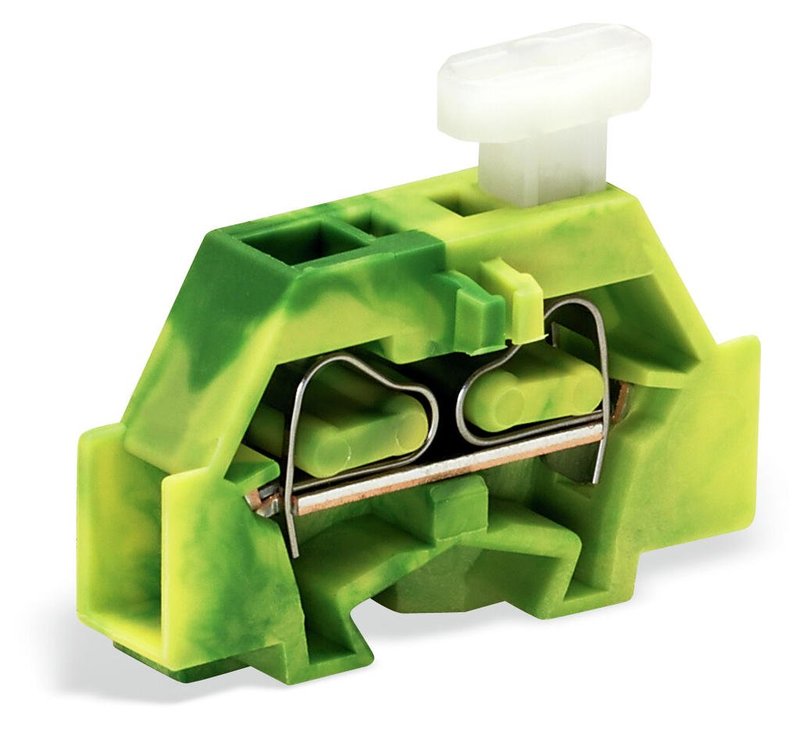 Wago клемная колодка 2-провода с одной стороны с нажимной кнопкой с фиксирующим фланцем, зеленые-желто 261-307/331-000