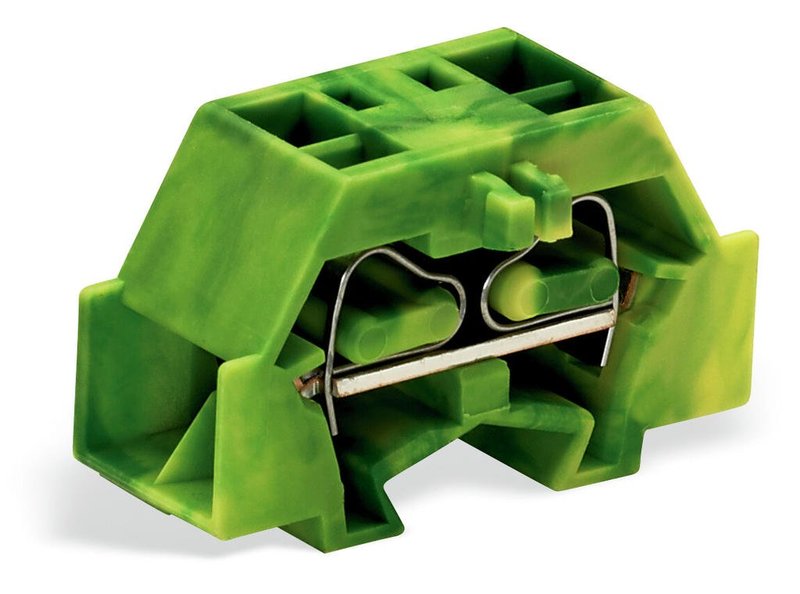 Wago клемная колодка 4-провода без кнопки с фиксирующим фланцем, зеленые-желто 261-337