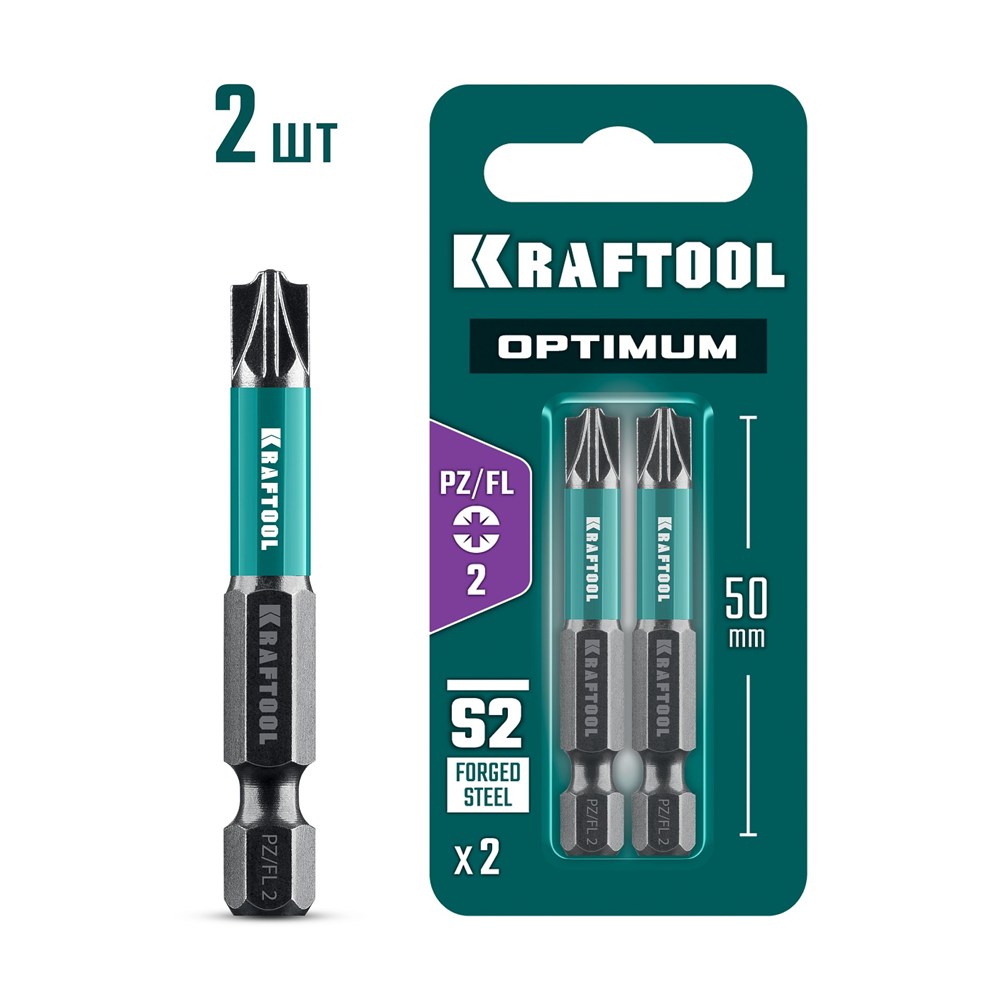 KRAFTOOL OPTIMUM PZ/FL 2, 50 мм, 2 шт, биты (261241-2-50-2)