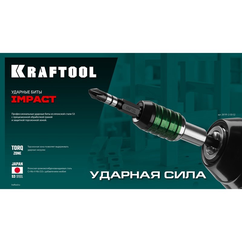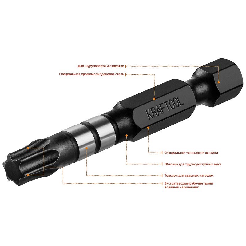 Профессиональные ударные биты KRAFTOOL «Impact» для для монтажа и демонтажа резьбовых соединений, имеют особую специальную торсионную зону в виде колец, предохраняющую наконечник от разрушения при пиковых нагрузках. Экстратвердые рабочие грани изготовленые из высококачественной японской стали S3 обеспечивают высокую надежность и гарантируют повышенный ресурс работы. Используются с ручным и механизированным инструментом. Предназначены для слесарных, монтажных и ремонтных работ.