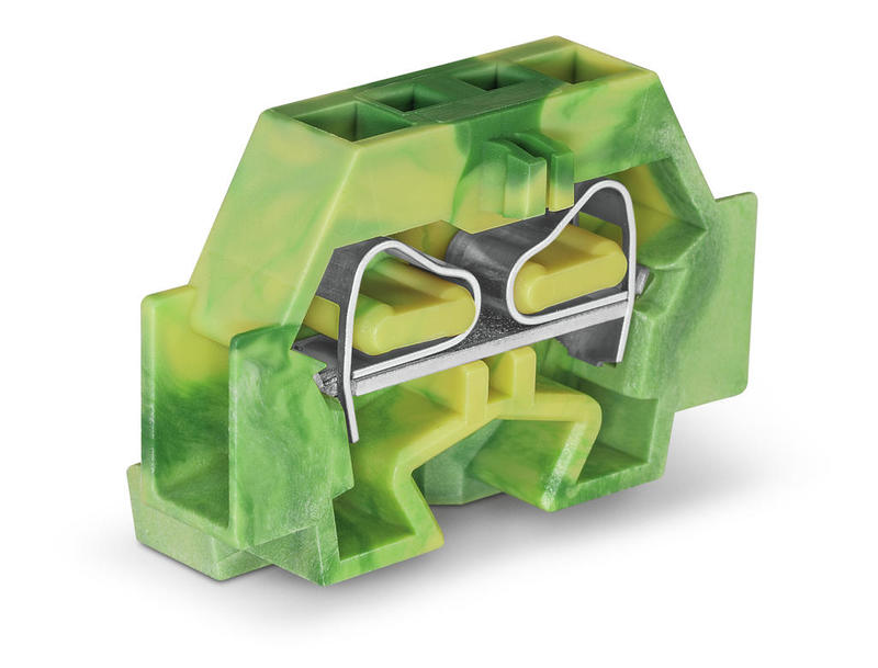 Wago клемная колодка 2-провода без кнопки с фиксирующим фланцем, зеленые-желто 262-307