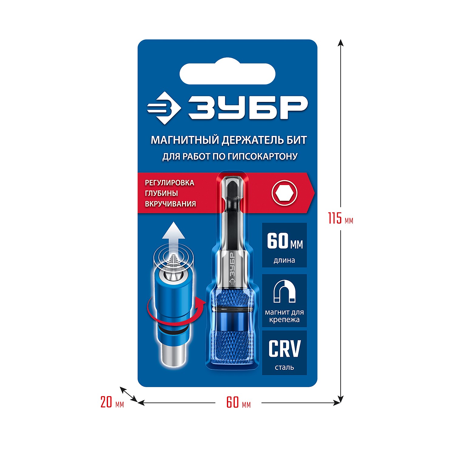 Профессиональный магнитный адаптер с регулируемым ограничителем. Для регулировки глубины вкручивания крепежа и предотвращения повреждения поверхностей из гипсокартона и дерева.
