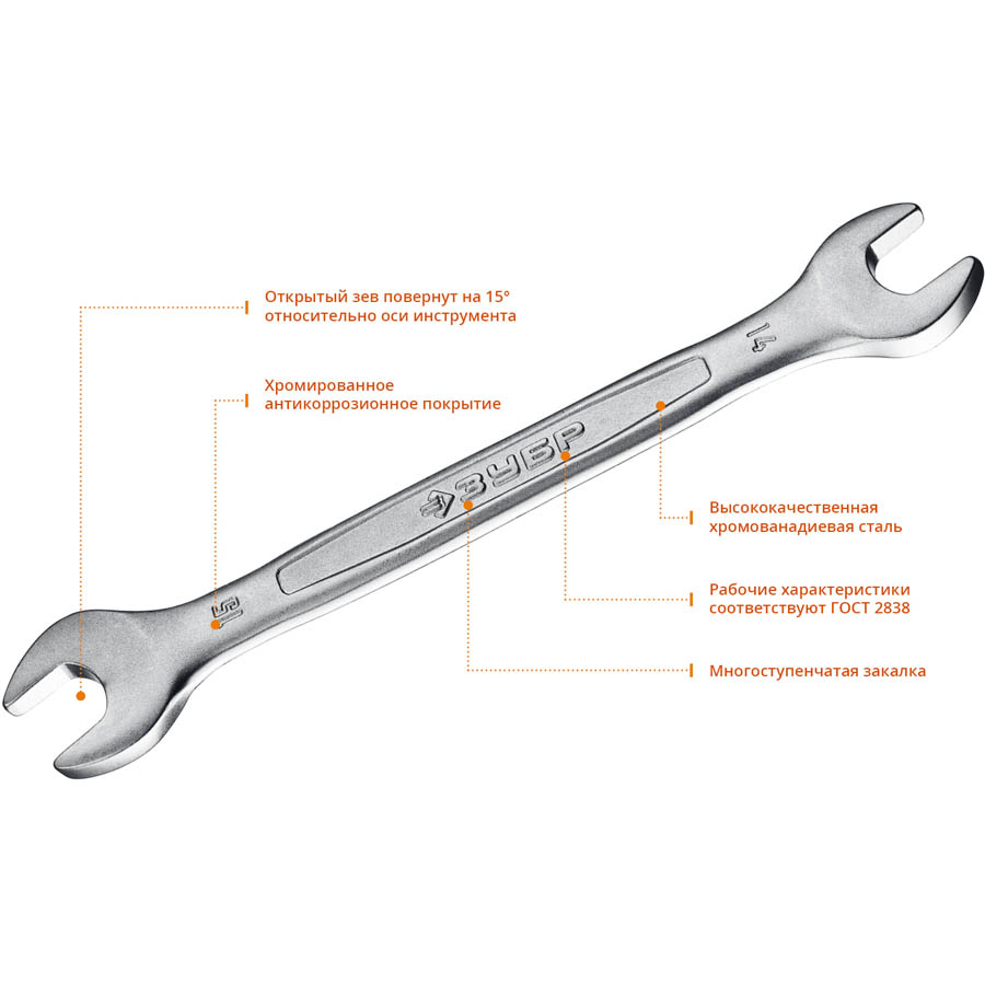 Рожковый гаечный ключ 14 x 15 мм, ЗУБР (27010-14-15_z01, )