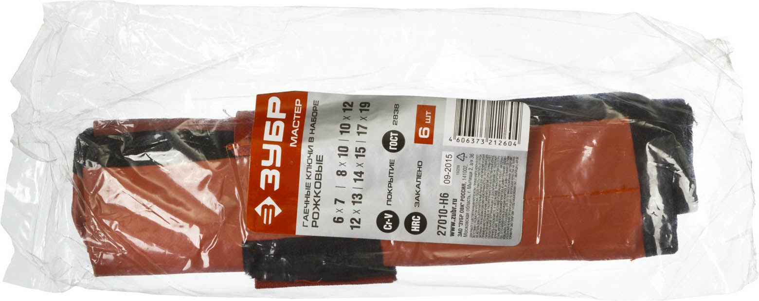 Набор рожковых гаечных ключей 6 шт, 6 - 19 мм, ЗУБР (27010-H6, )