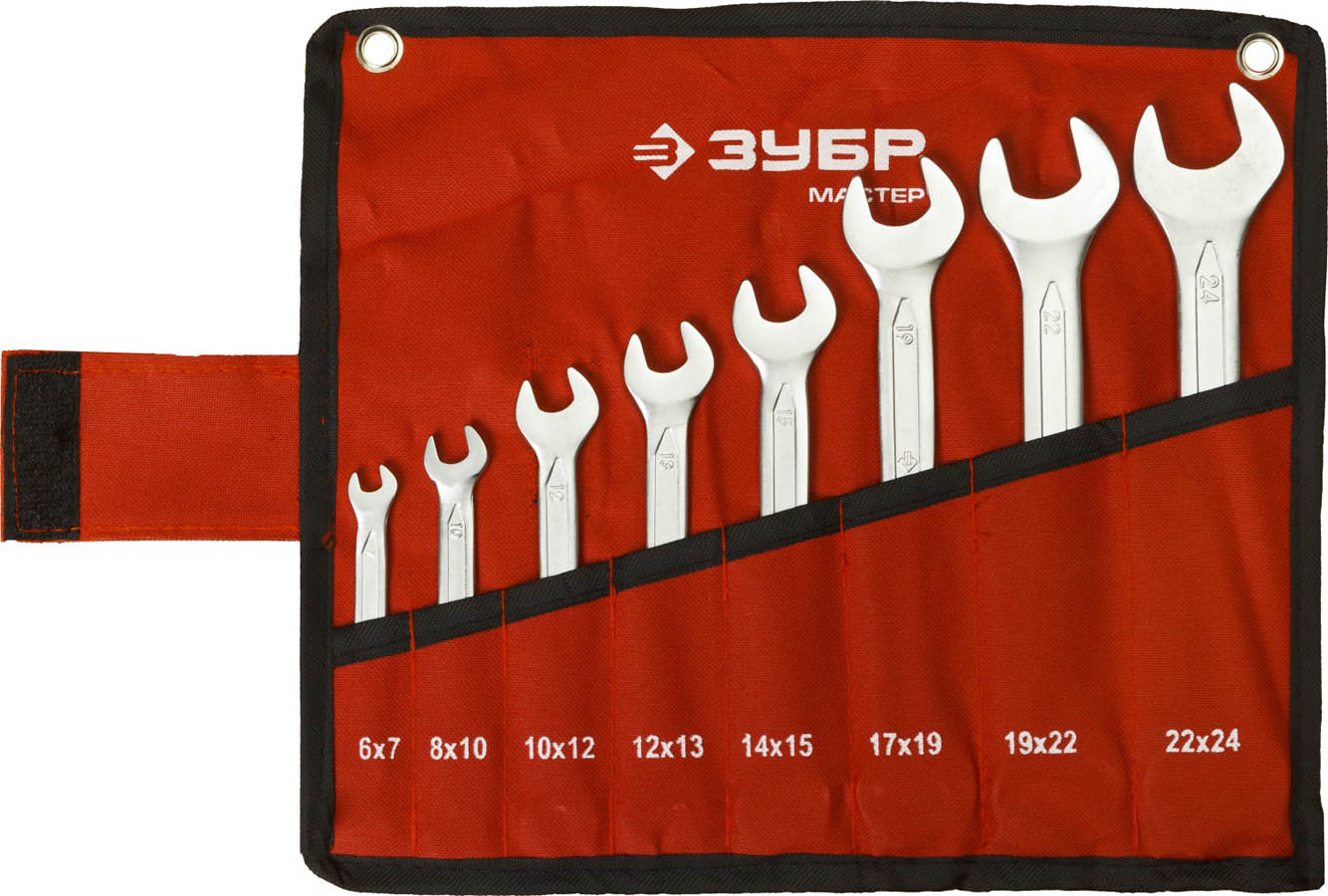 Набор рожковых гаечных ключей 8 шт, 6 - 24 мм, ЗУБР (27010-H8, )